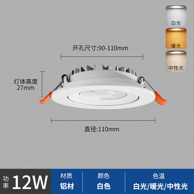 - Power: 12W, Diameter 110mm, Height 27mm, Cut-out Size 90-100mm