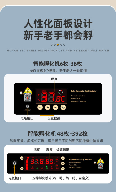 - Product Specifications: 48 single eggs [Temperature and Humidity Dual Display + Mode Incubation]