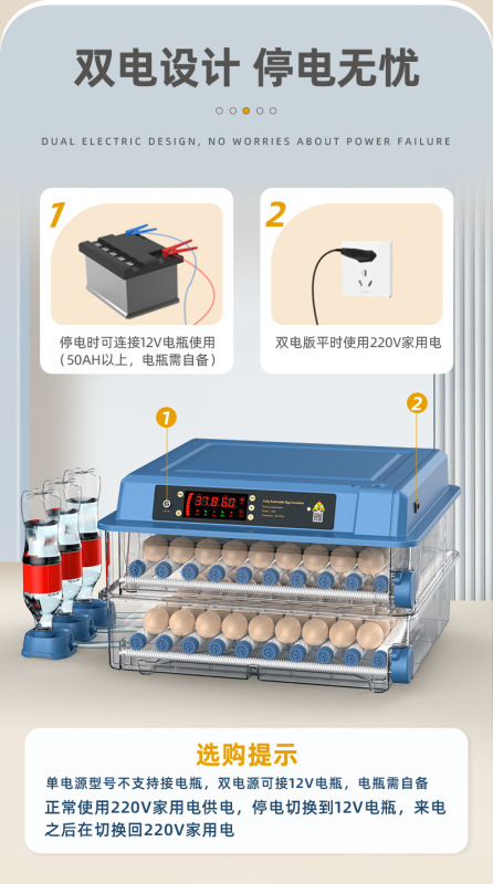 - Product Specifications: 128 single eggs [Temperature and Humidity Dual Display + Mode Incubation]