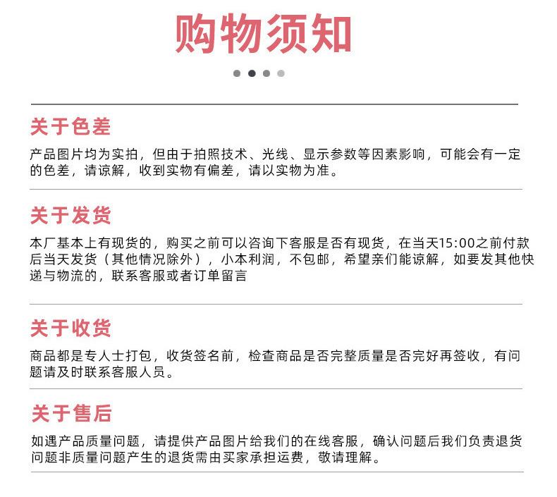 Delivery time: For products in stock, they will be shipped within 3 working days (excluding holidays) after you place your order and make payment. You will receive our notification after shipment.