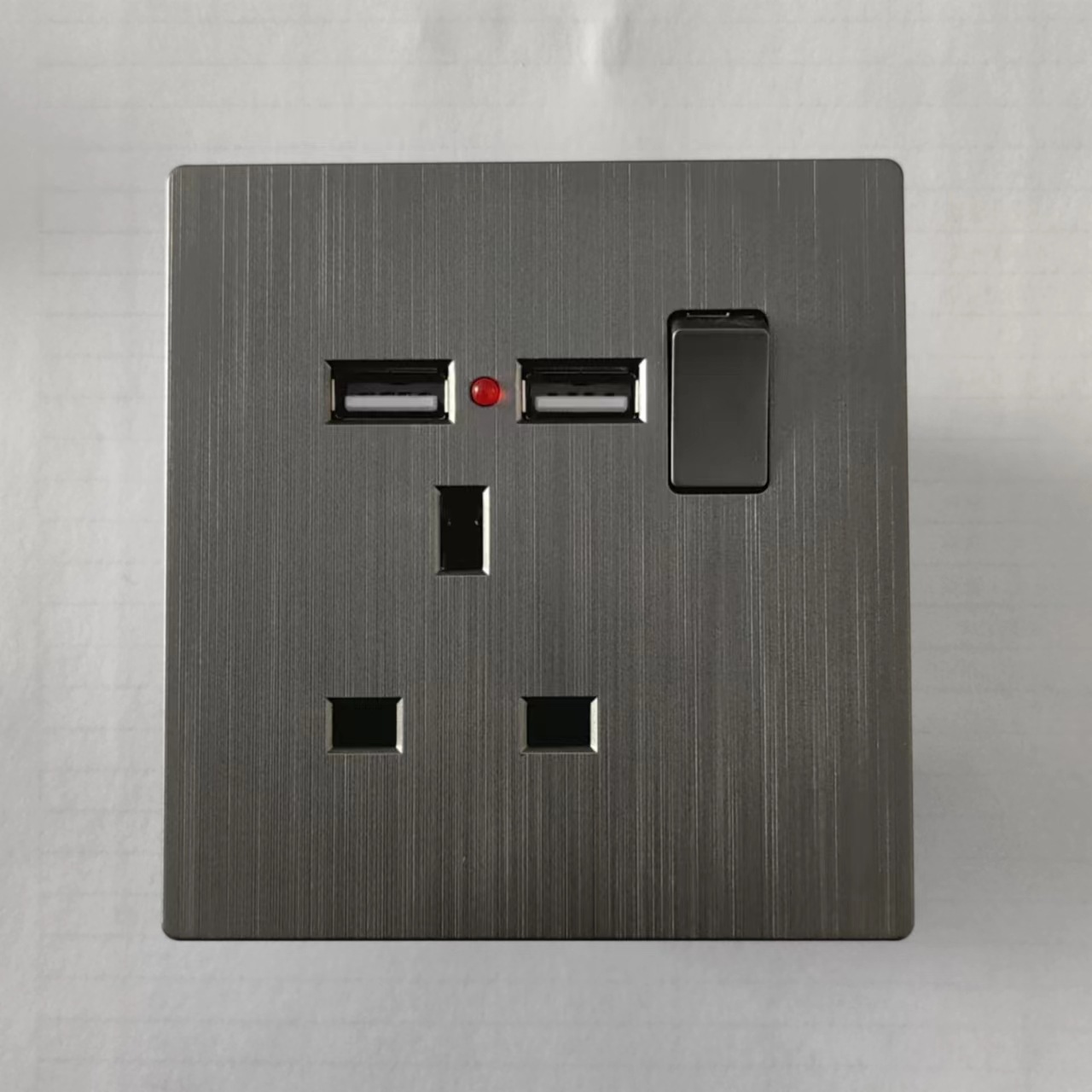 - Model: Double Pole 13A Socket with Light + 2 USB Ports