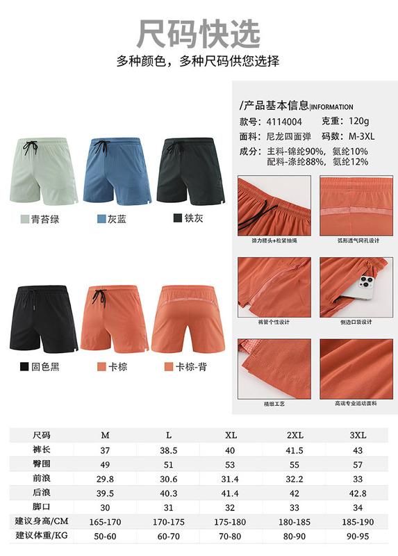 - 速干:速干短褲