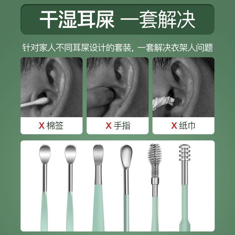 - Specification: Six-piece set green pouch ear spoons