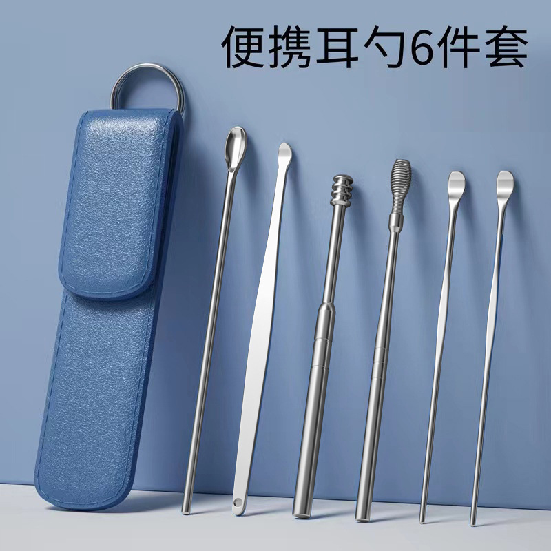 - Specification: Six-piece set blue pouch ear spoons