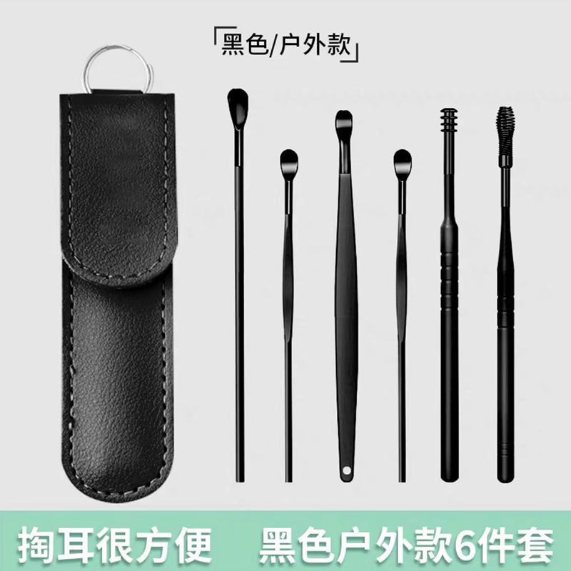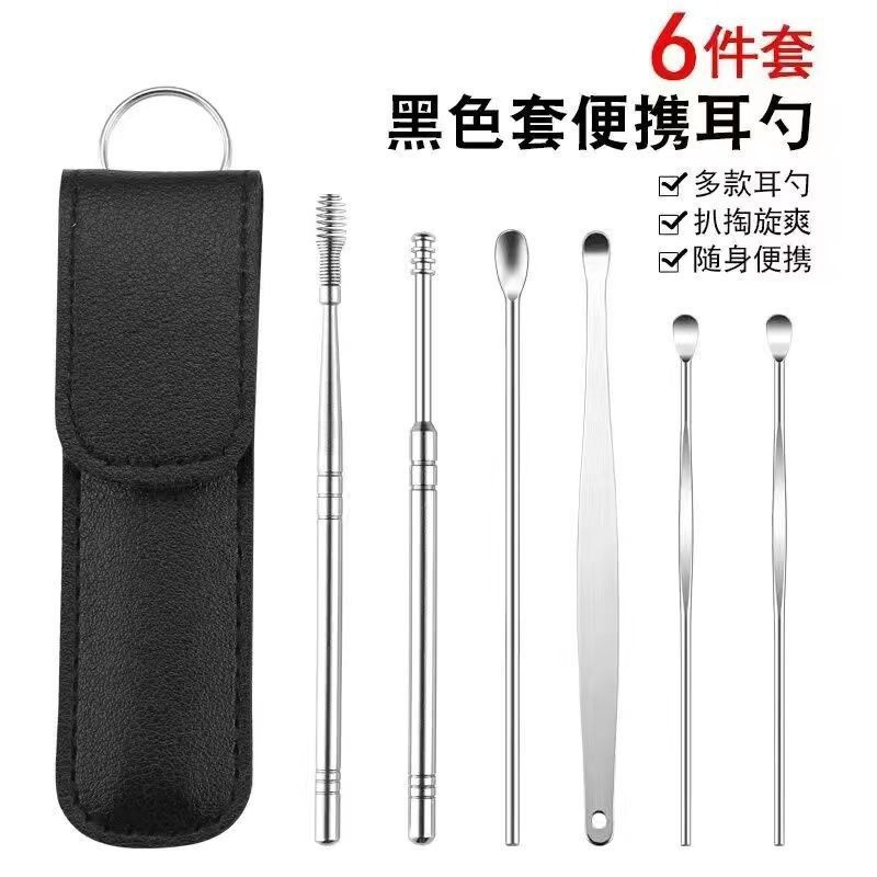 - Specification: Six-piece set black pouch ear spoons
