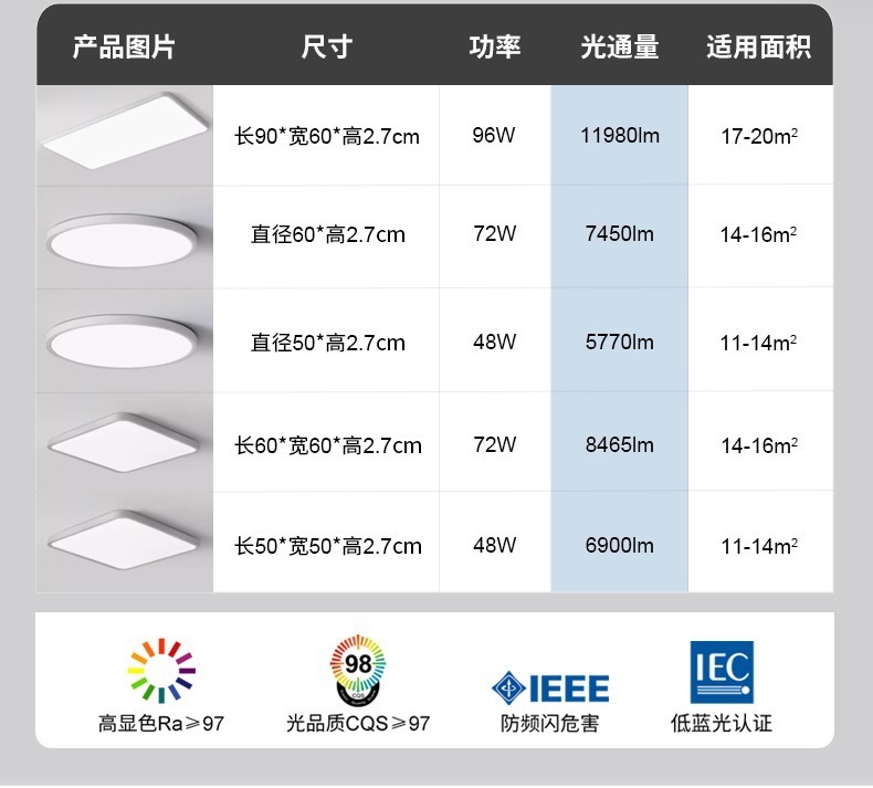 - 光源功率:【普瑞凌晶板燈罩】美國原裝普瑞芯片-60CM圓形