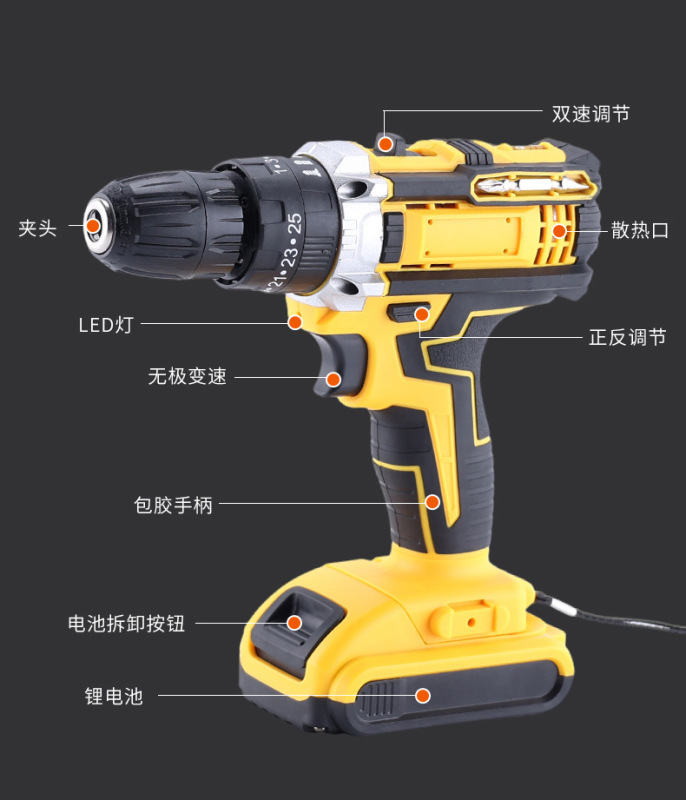 - Specification Model: Two Chargers One Drill (Accessory Plastic Box)