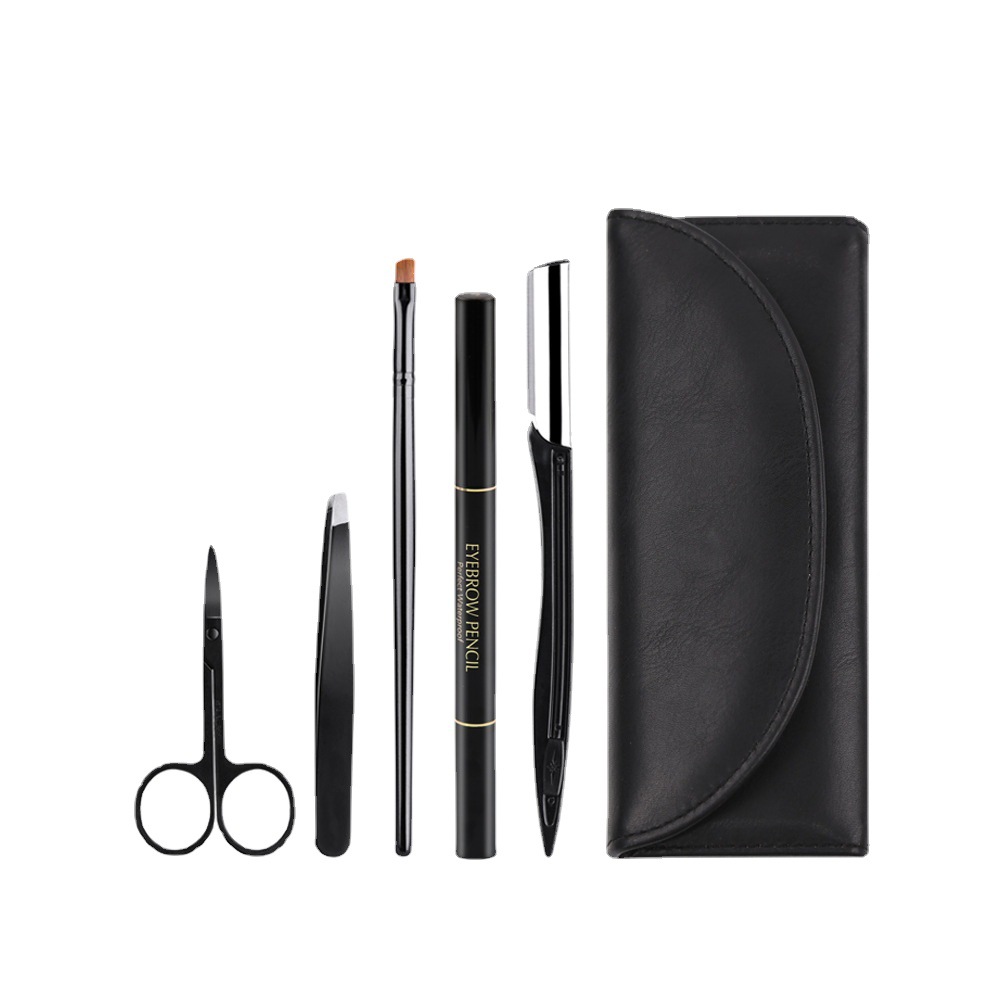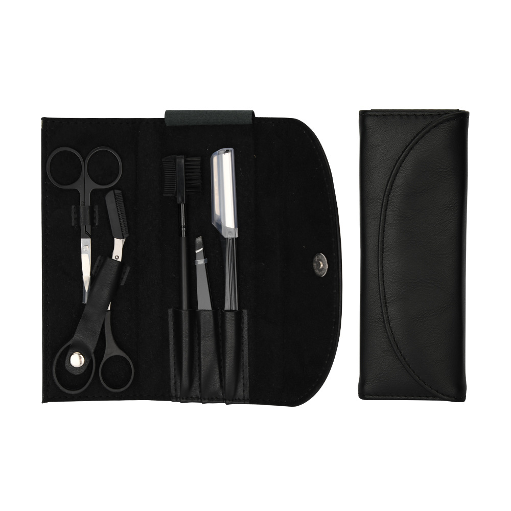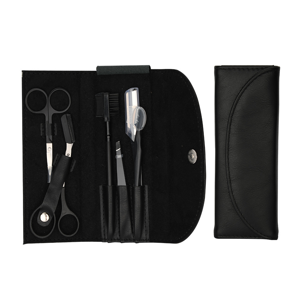 - Specification: 65247 Black Smooth Texture Leather Bag Set of 6 with Male Eyebrow Card