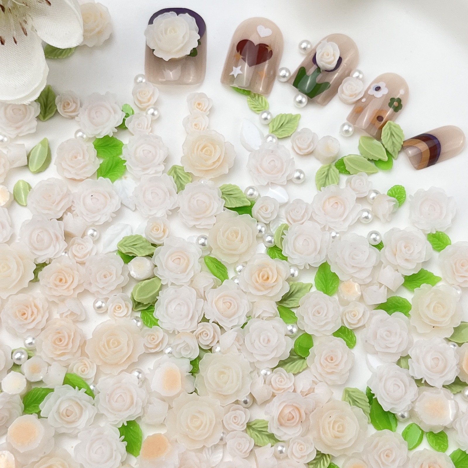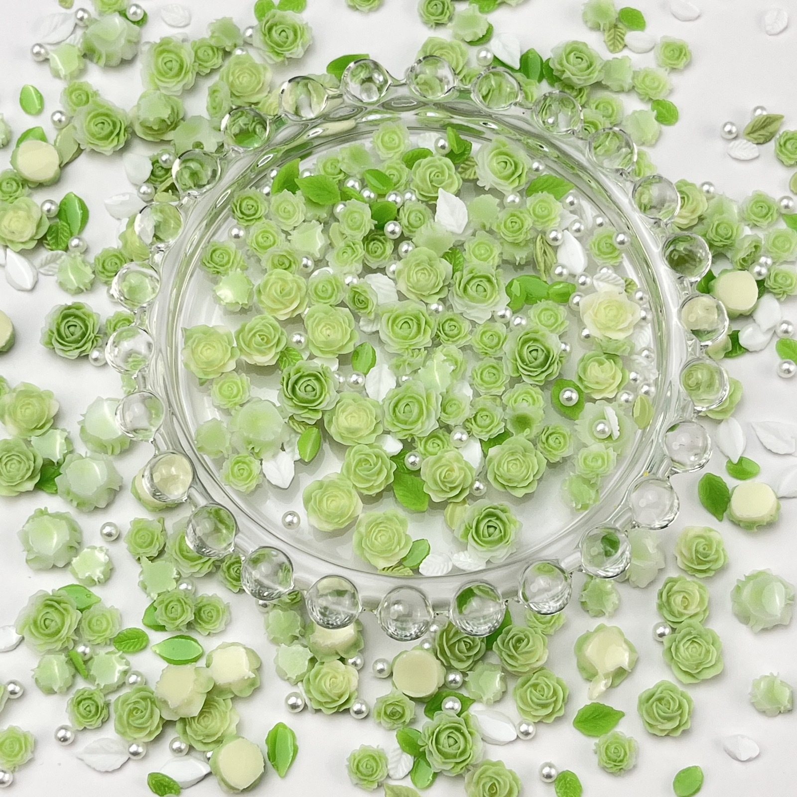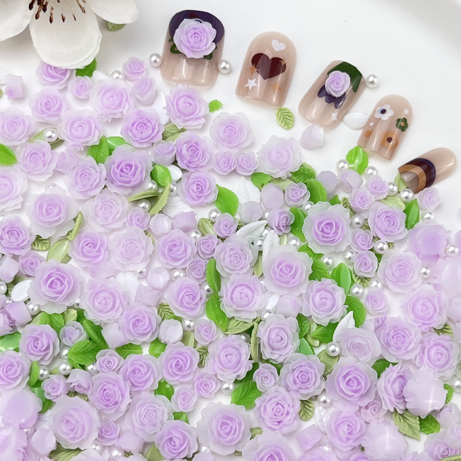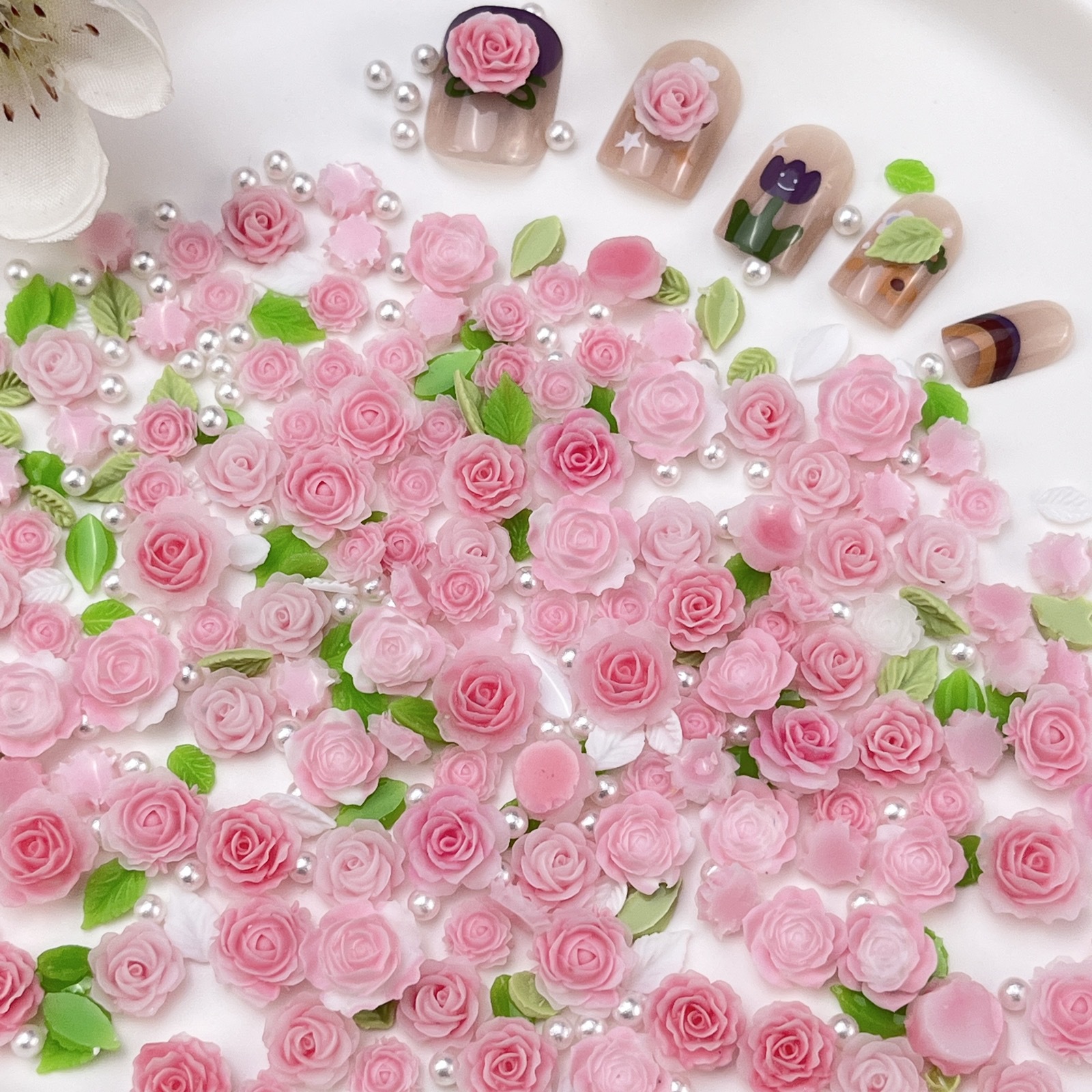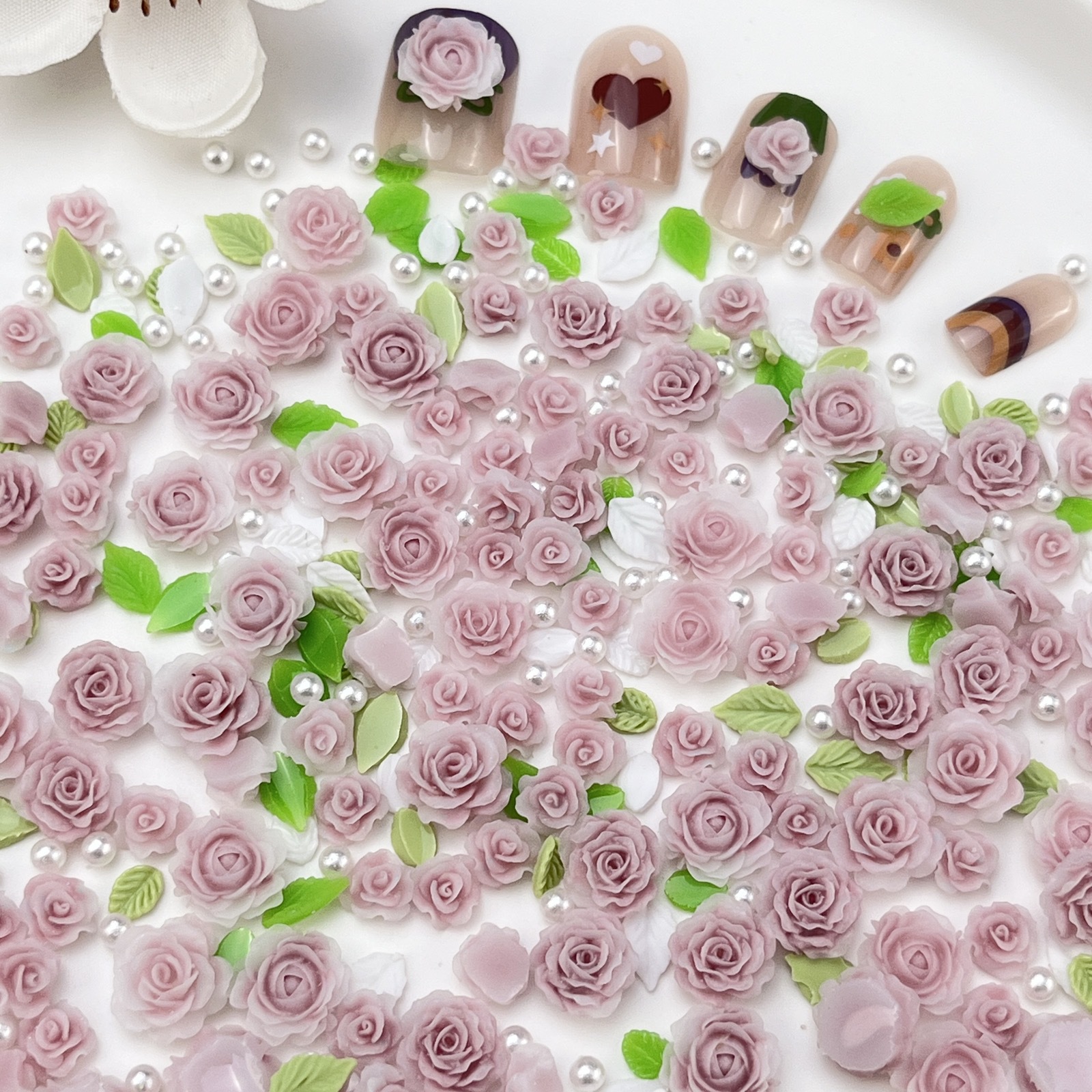 - Specification Type: 10ml Bag (approx. 40 large and small flowers + several leaves and pearls)