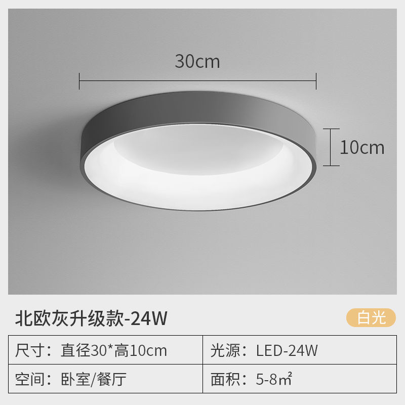 - 光源功率:北歐灰圓30厘米-24W護眼白光