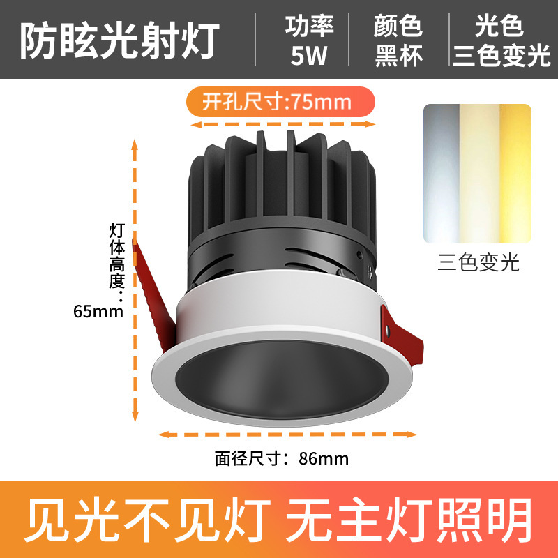 - Power: Anti-glare White Cup - 5W Tri-color Variable Light - Hole 75mm