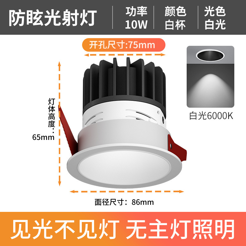 - Power: Anti-glare White Cup - 10W White Light 6000K - Hole 75mm