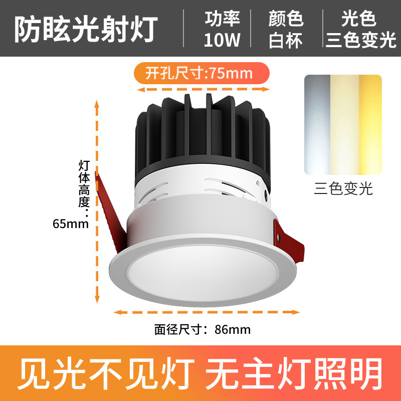 - Power: Anti-glare White Cup - 10W Tri-color Variable Light - Hole 75mm