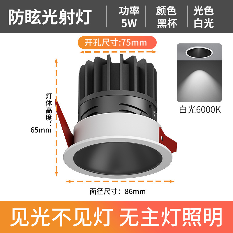 - Power: Anti-glare White Cup - 5W White Light 6000K - Hole 75mm