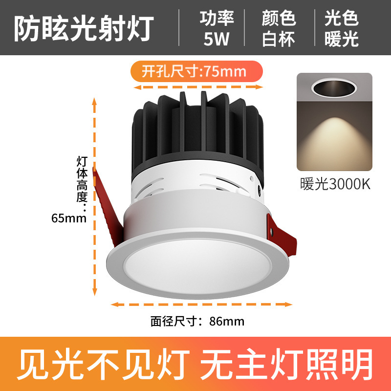 - Power: Anti-glare White Cup - 7W Warm Light 3000K - Hole 75mm