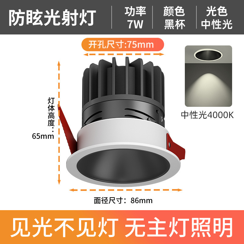 - Power: Anti-glare Black Cup - 7W Neutral Light 4000K - Hole 75mm