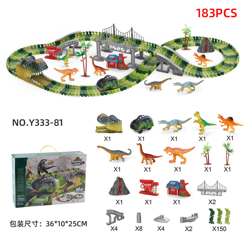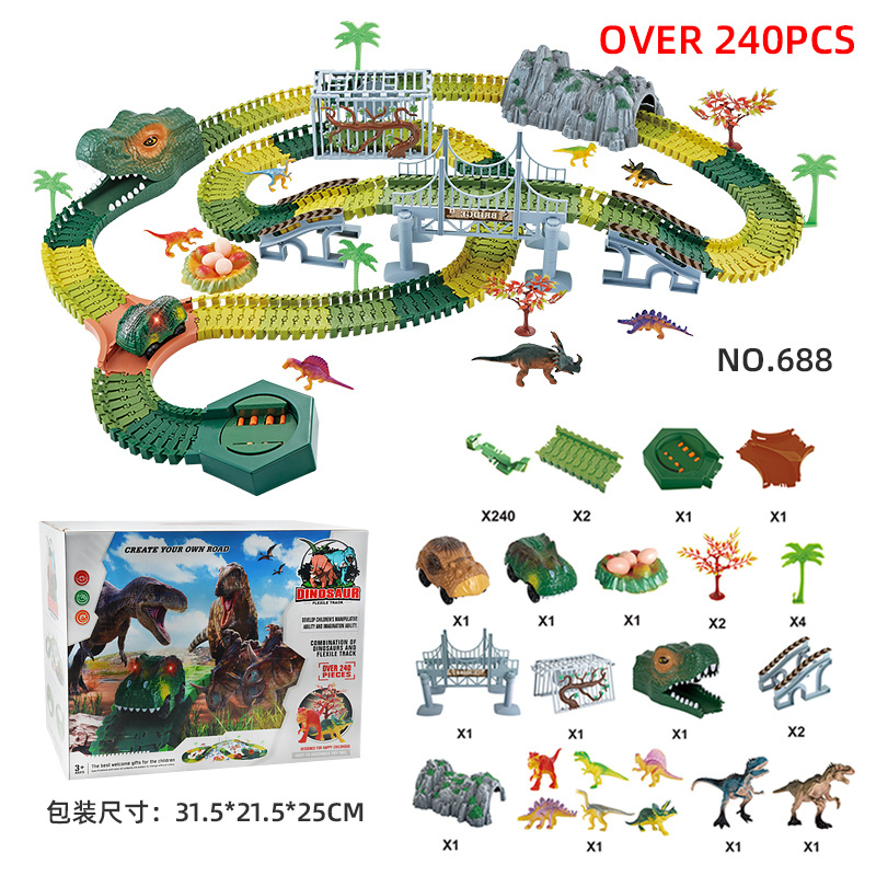 - 特色功能:恐龍拼裝軌道燈光小車