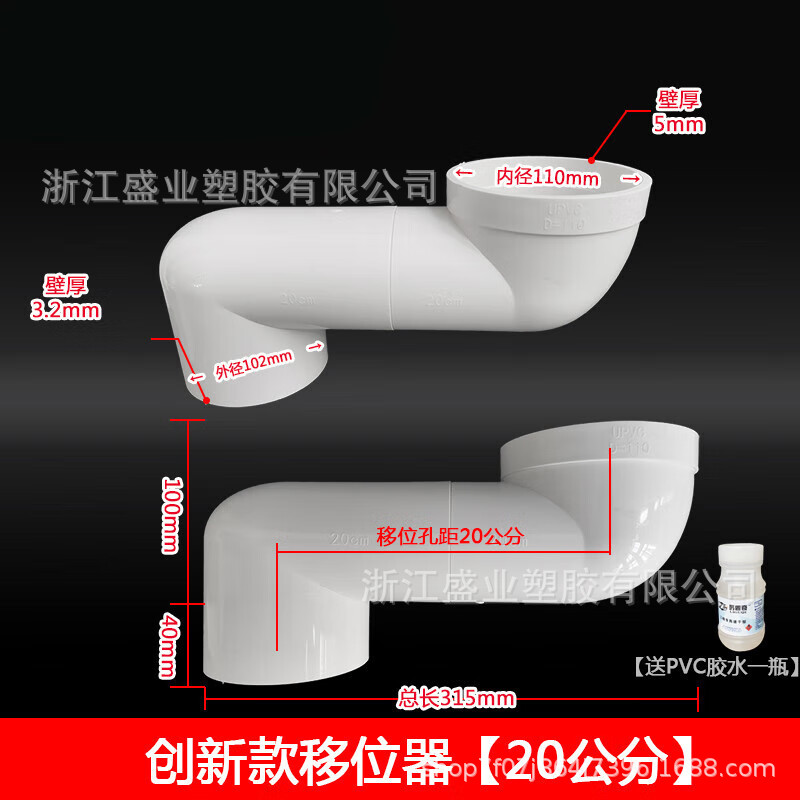 - Product Specification: 110 single socket offset 20cm lower insertion pipe