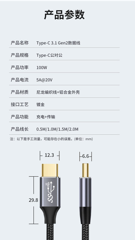 - 型號:100CM金屬殼Gen2直頭編織線