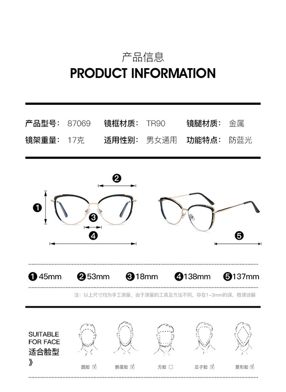- 鏡架材料:TR90+金屬