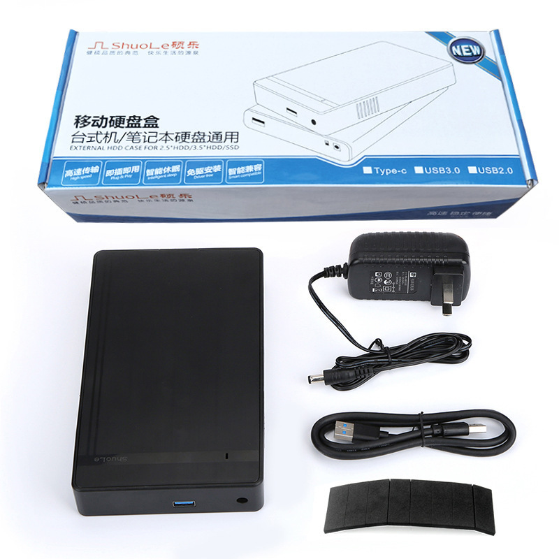 - Package Contents: Hard Drive Enclosure, Data Cable, Shockproof Pad, Paper Box Packaging