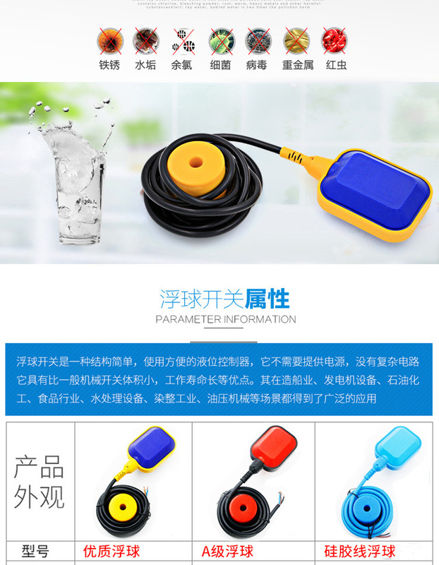 - Switch Type: Floating Ball Switch