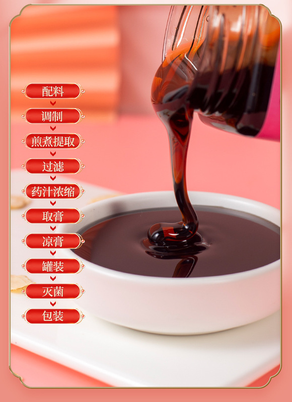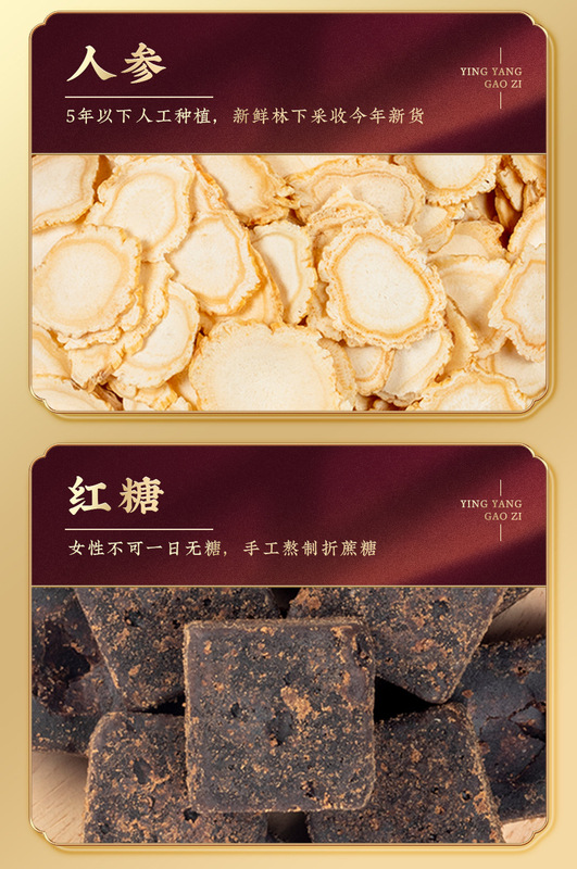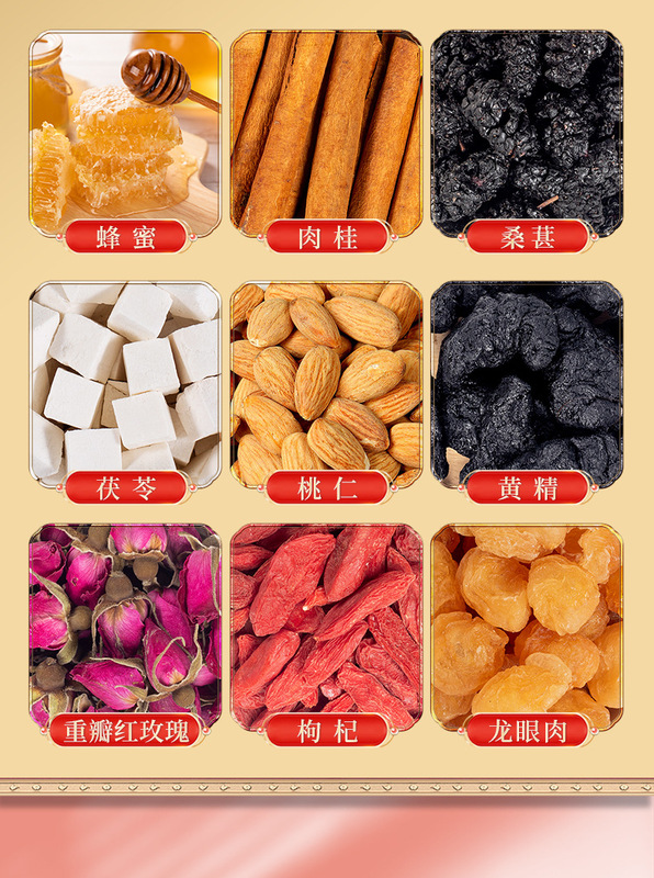 - Main Ingredients: Malt Sugar, Collagen, Ginseng, Cinnamon, Mulberry, Poria, Peach Kernel, Polygonatum, Double-layer Red Rose, Goji Berry, Longan, Brown Sugar, Honey