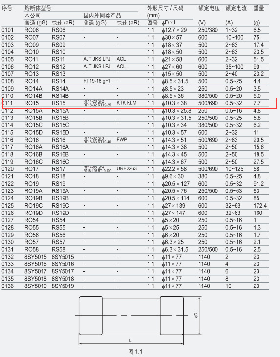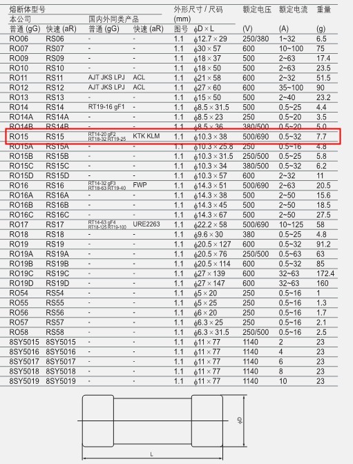 - Model Price: RO15-0.5A/690V/500V