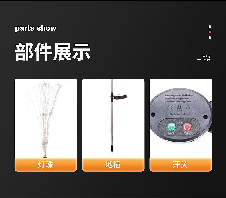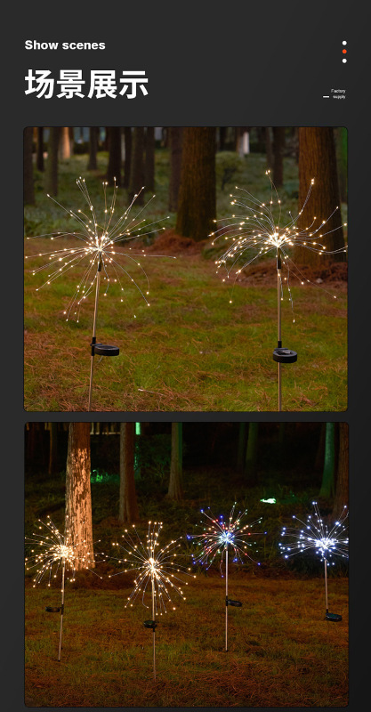 - Specification: Solar Ground-Insert Firework Lamp (Warm Color)