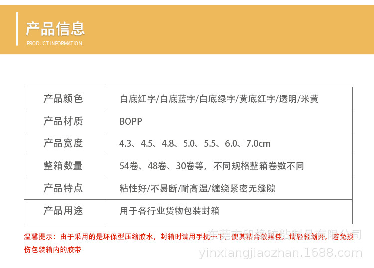 - Tape category: packaging tape