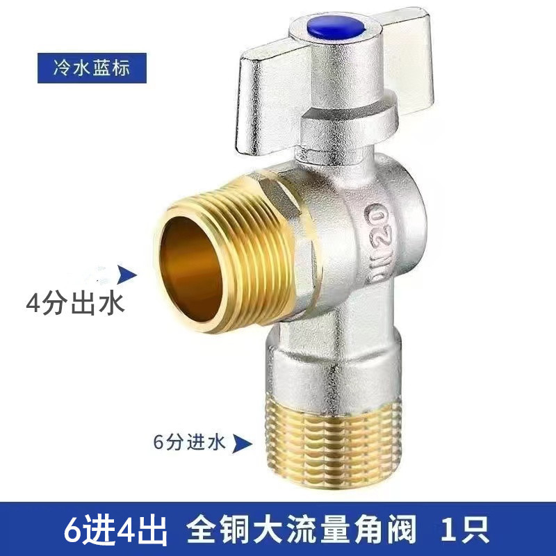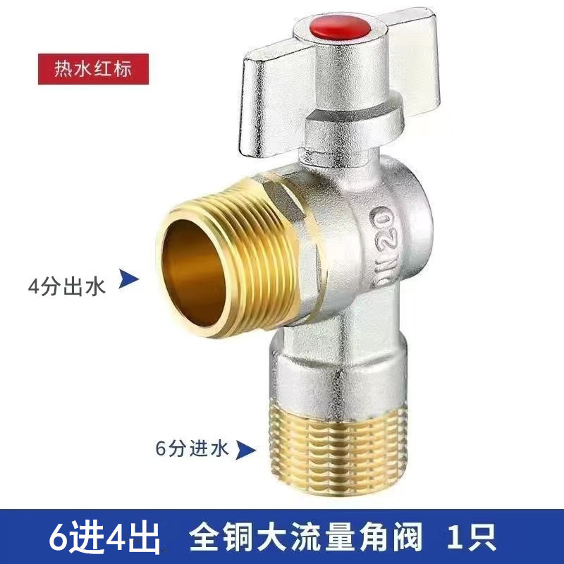 - 規格:I款黃銅款190克6進4出大流量球芯角閥冷水