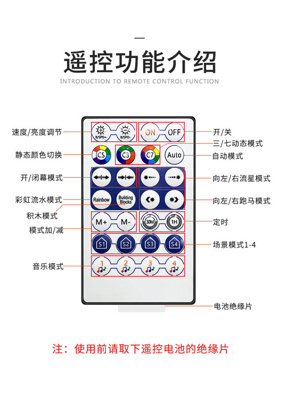 - Control Method: Remote Control + Mobile APP Remote Control
