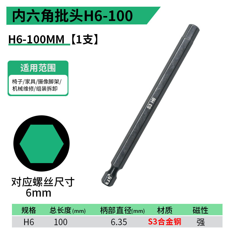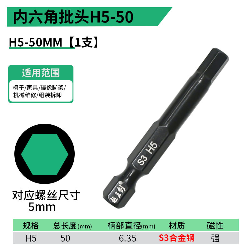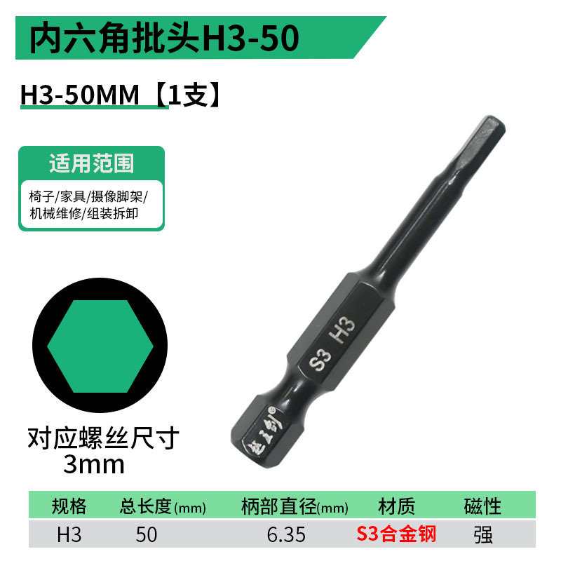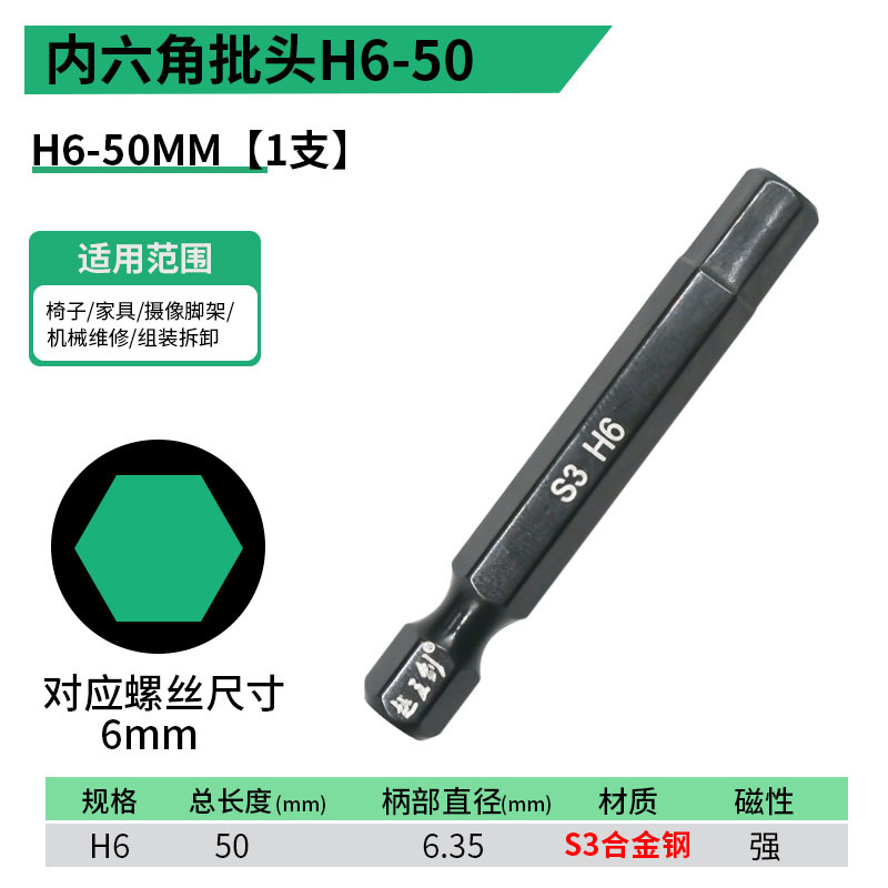 - 規格型號:內六角批頭【H6】50MM