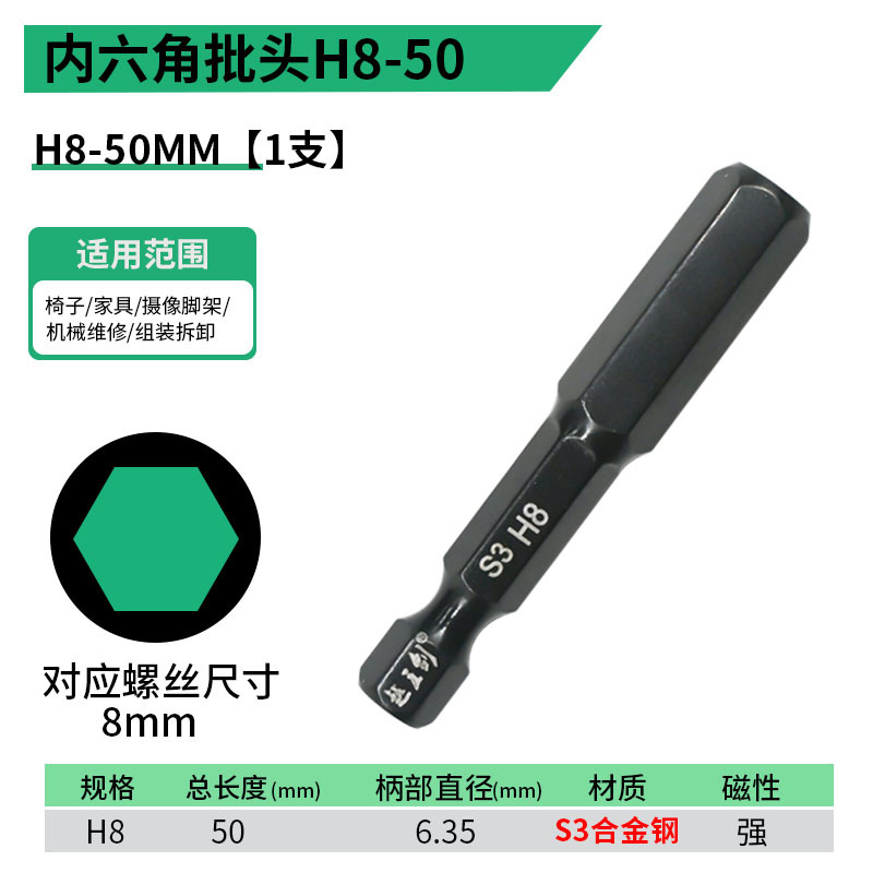- 規格型號:內六角批頭【H8】50MM