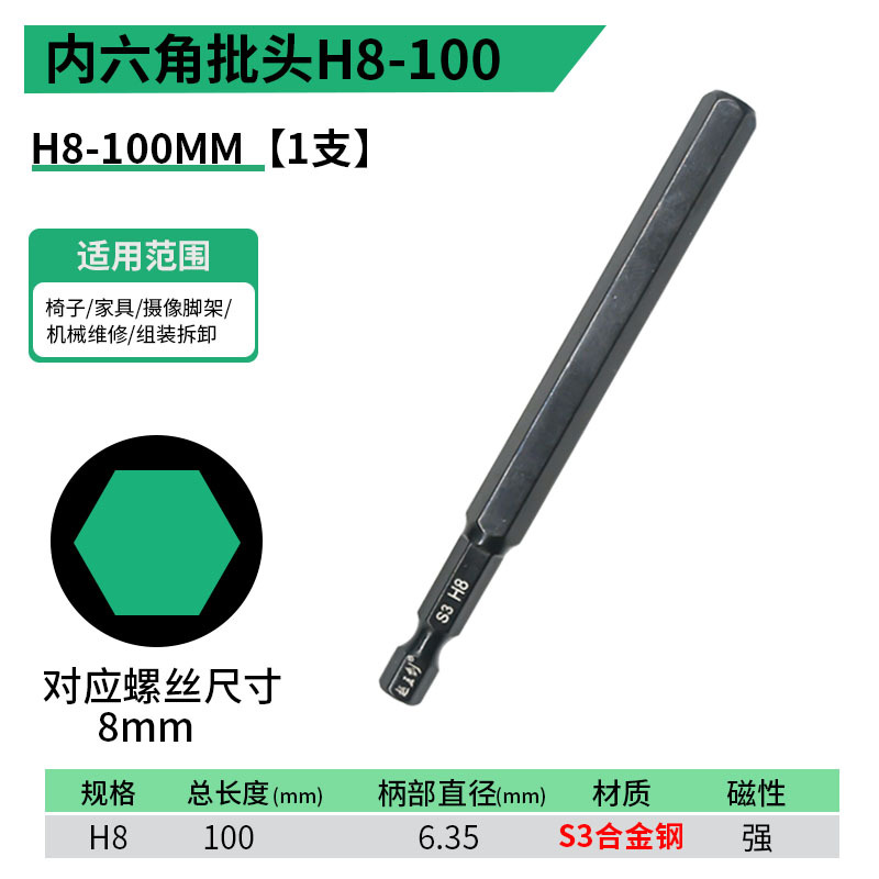 - 規格型號:內六角批頭【H8】100MM