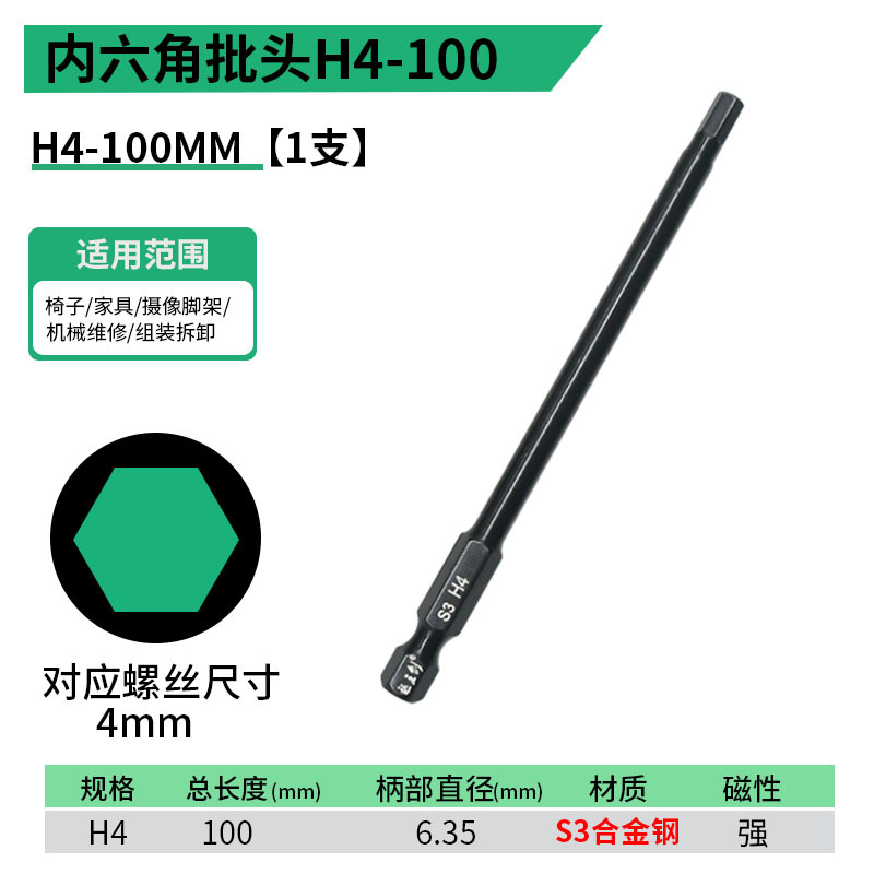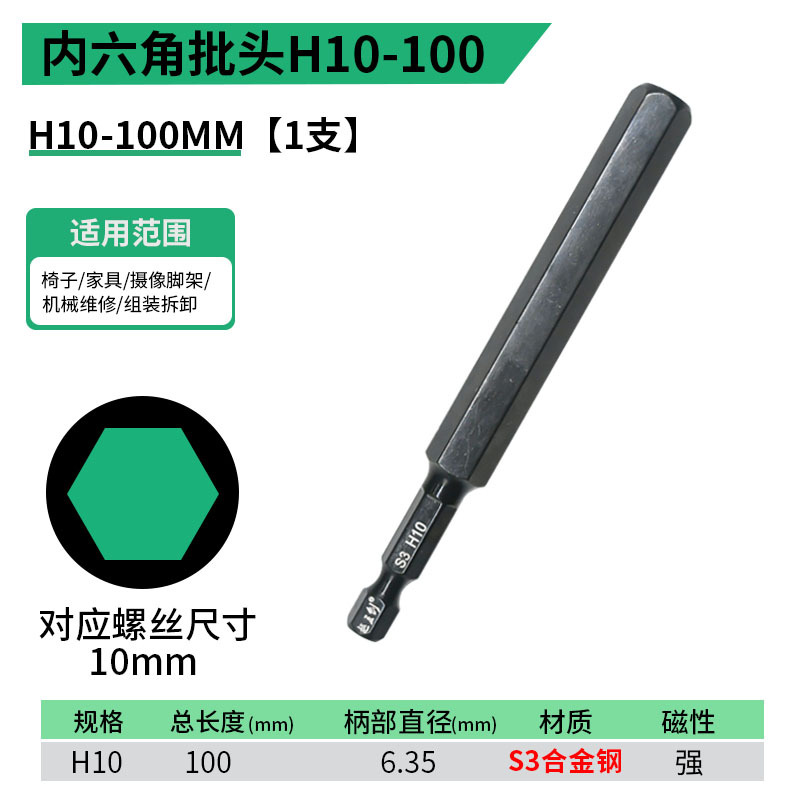 - 規格型號:內六角批頭【H10】100MM