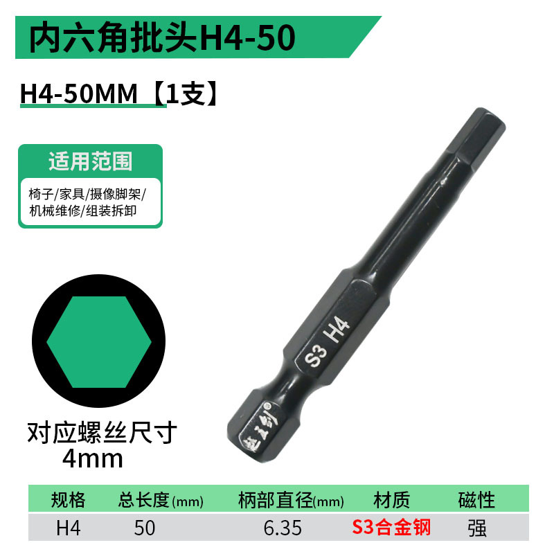 - 規格型號:內六角批頭【H4】50MM
