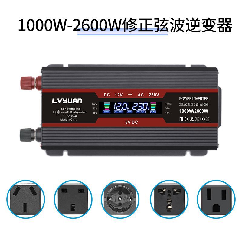 - Specifications: 220*1000W rated / 2600W peak * DC12-24 * Black * 12V universal
