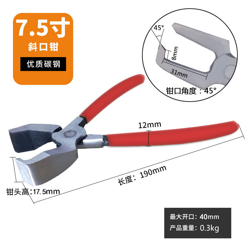 - 型號:7.5寸彎頭玻璃鉗(帶斜面)