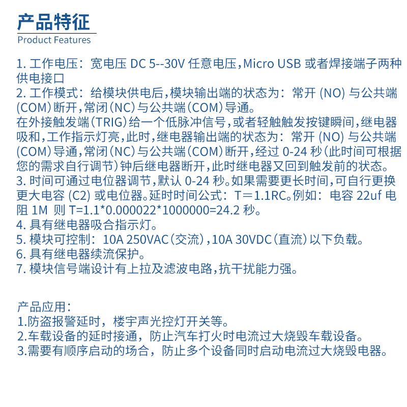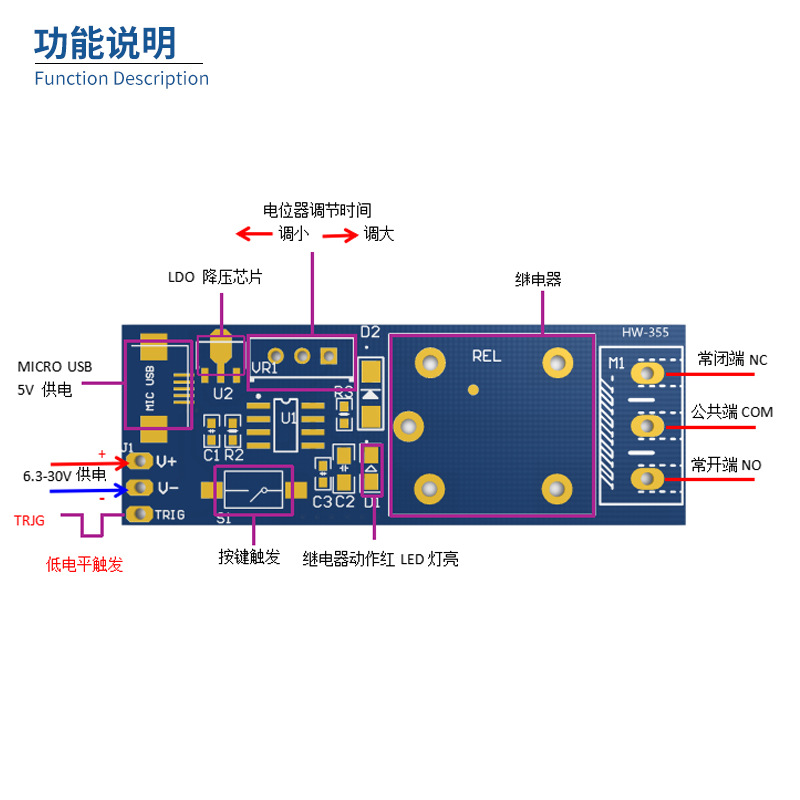 - 規格:1路觸發延時繼電器模塊