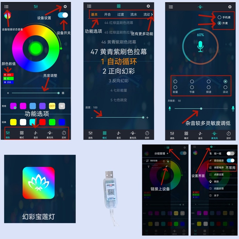 - Product Specifications: 10 pieces of 0.5m + 1 piece of 1m + LED strip adapter + Bluetooth sound control controller