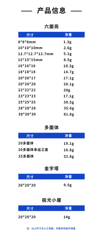 - 規格:20*20mm多面體+帶燈禮盒