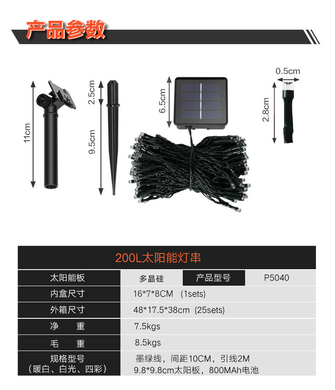 - Specifications: 8 Modes 22m 200 Lights