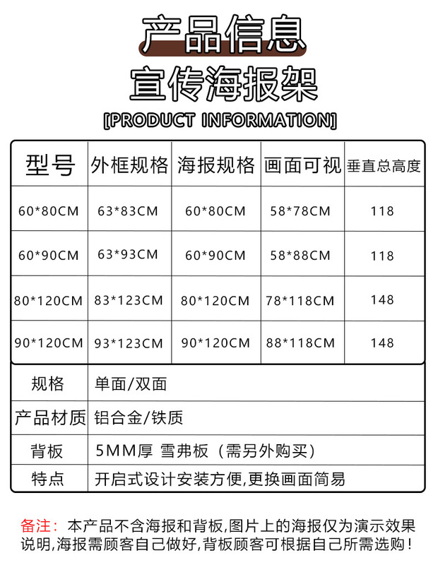 - Double-Sided Poster Stand: Hinged Handheld Poster Stand