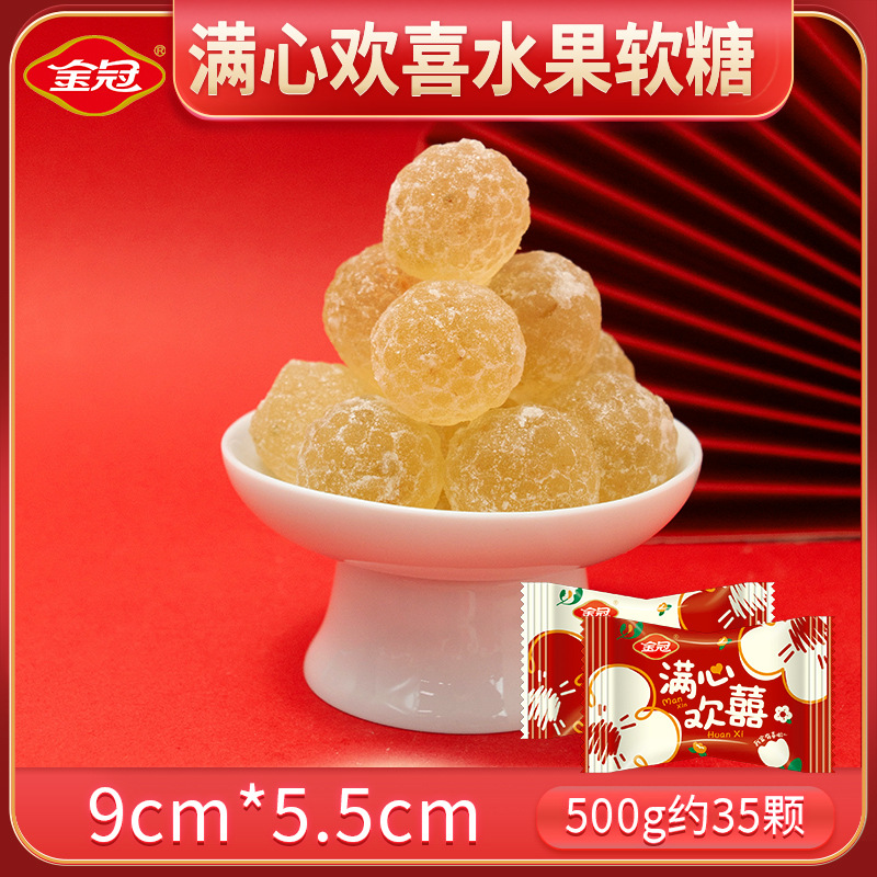- 包裝規格:滿心歡喜果肉軟糖(紅色)500g約35顆