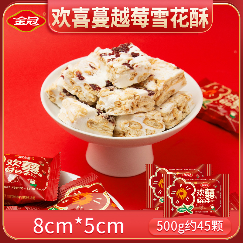 - 包裝規格:歡喜蔓越莓雪花酥500g約45顆