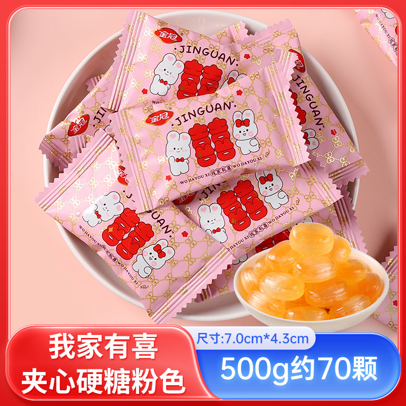 - 包裝規格:我家有喜夾心硬糖粉色1斤約70顆