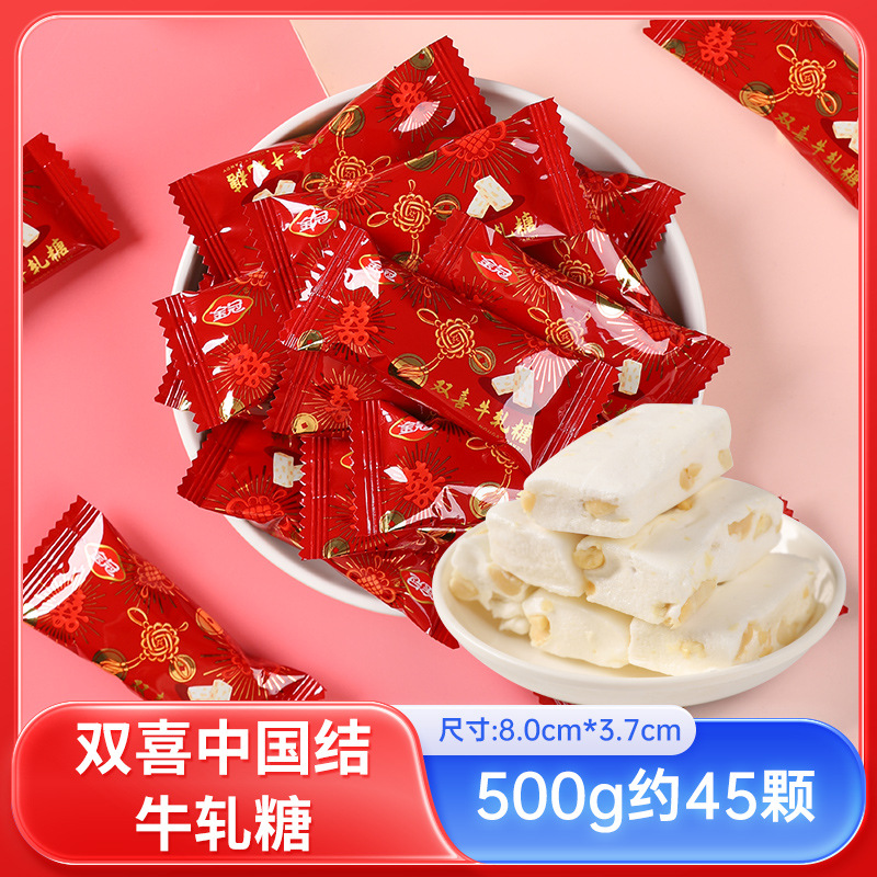 - 包裝規格:雙喜中國結牛軋糖1斤約45顆