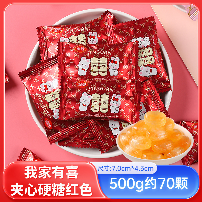 - 包裝規格:我家有喜夾心硬糖紅色1斤約70顆