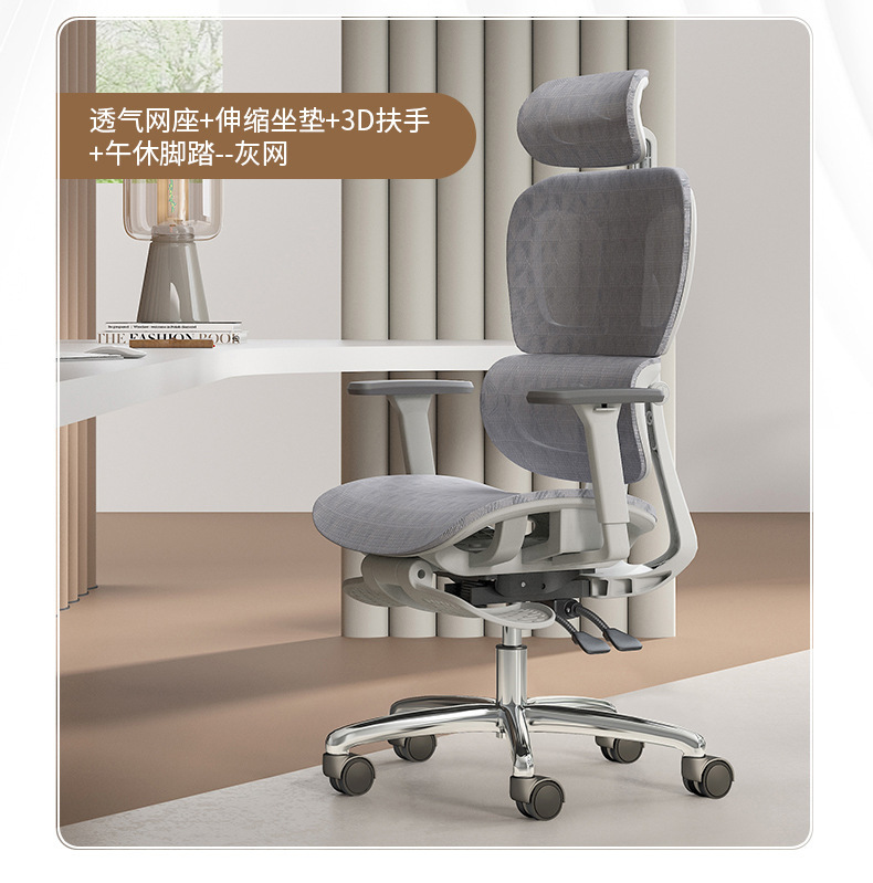 - Specification: Fixed Cotton Seat +午休脚踏 [White Frame Gray Mesh]